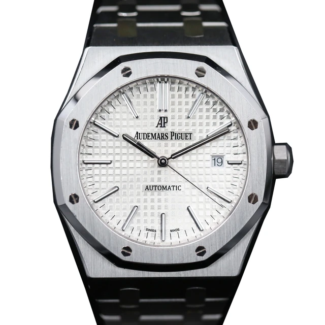 This Audemars Piguet Royal Oak 15400ST.OO.1220ST.02 has a silver baton dial and a bracelet strap. This Audemars Piguet has undergone a thorough inspection of accuracy, functionality and condition at our Audemars Piguet certified service centre to determine the level of reconditioning required to meet our strict standards. It has also been checked against our records to ensure authenticity. All our watches have a 24-month warranty for your peace of mind.